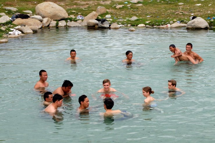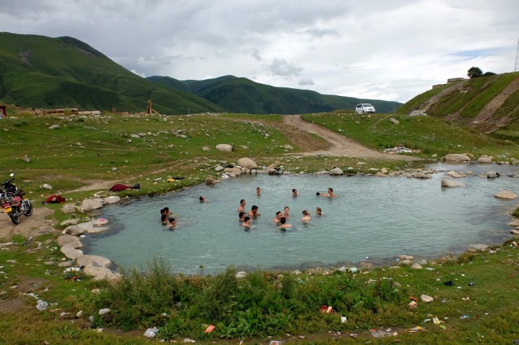 đ©đȘ Wir entdecken auch eine warme Wasserquelle, ein Treff fĂŒr die Mönche am Nachmittag und ein « Bad » fĂŒr viele Menschen frĂŒhabends. Das ist fĂŒr uns eine Möglichkeit uns nach dem Höhenwechsel, was fĂŒr alle schwer war, in einer wunderschönen Gegend zu entspannen.