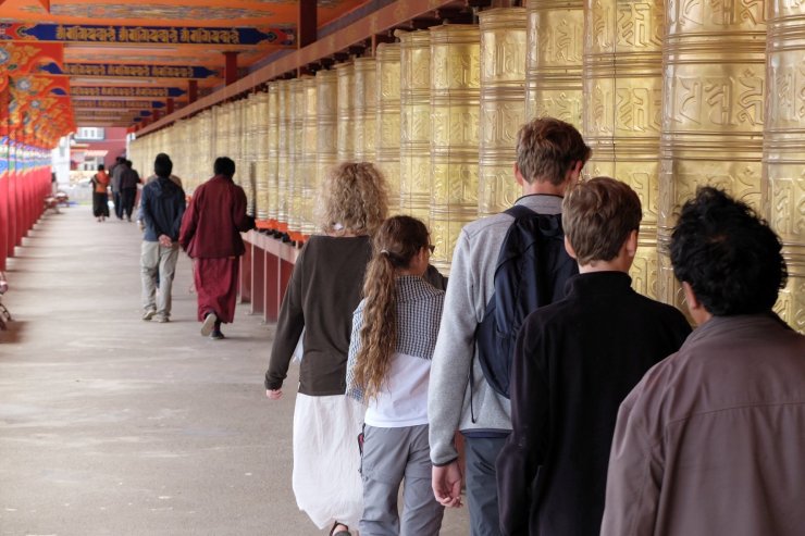 Pour finir, circonvolution d’un des nombreux temples, bordĂ© de magnifiques moulins Ă  priĂšres.