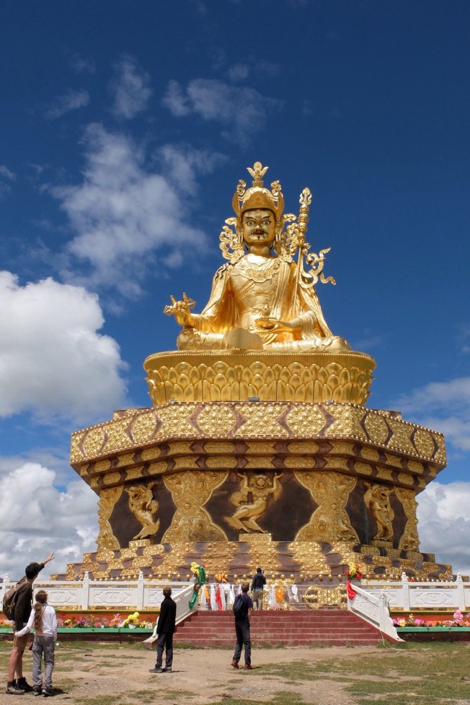 DĂ©part ce jour pour le monastĂšre de Yarchen, Ă  environ 3h de route du village de Dorjee. Magnifique route d’altitude, passage par un col Ă  4400m, puis apparaĂźt la silhouette d’une statue gĂ©ante, dominant le monastĂšre.
