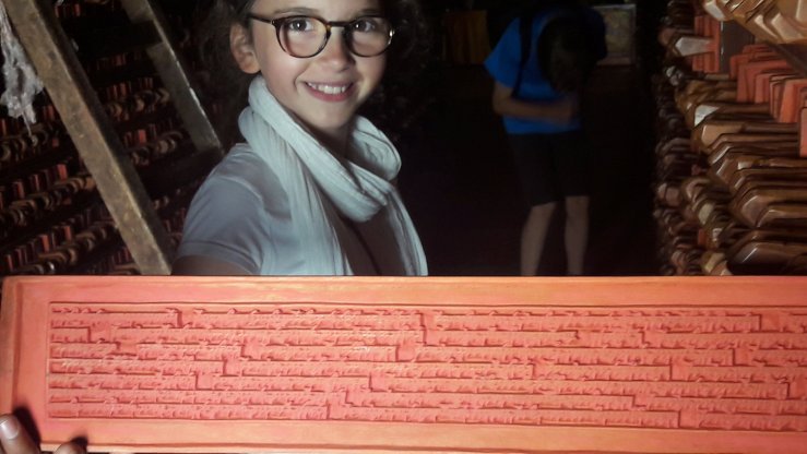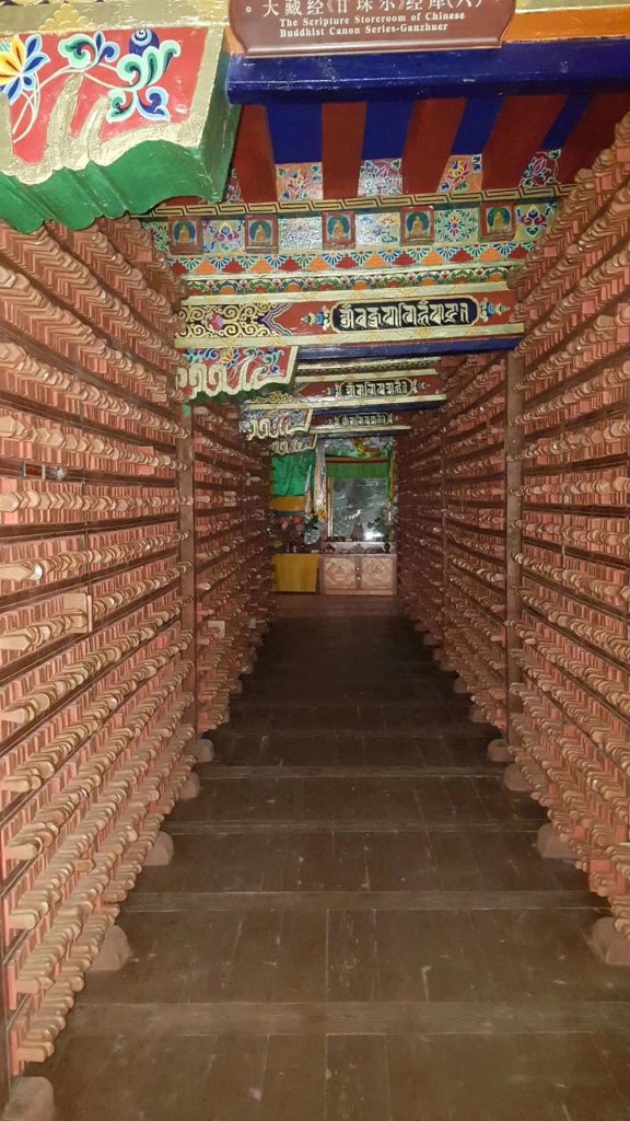 Nous avons dĂ©butĂ© cette dĂ©couverte avec l’impressionnante imprimerie qui date de 1729 et qui produit trois-quart des textes bouddhistes du Tibet ! Des tissus qui flottent dans les montagnes jusqu’aux textes lus dans les monastĂšres, presque tout vient directement de ce bĂątiment. Ce n’est pas surprenant quand on voit ces grandes galeries remplies d’empreintes en bois, et la vitesse Ă laquelle les artisans travaillent. La plupart des commandes viennent des monastĂšres.