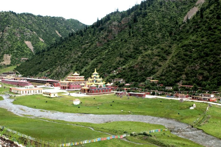 Nous passons d’abord une journĂ©e Ă Dzogchen, posĂ© sur un site magnifique, au creux d’un cirque montagneux.
