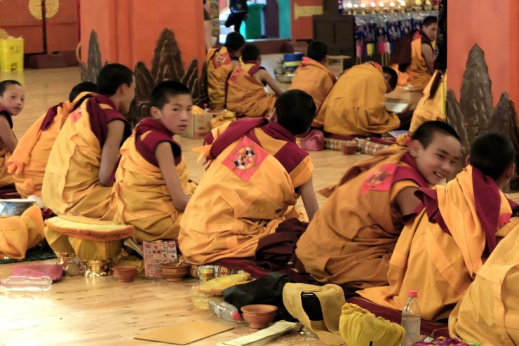 Un peu plus loin nous trouvons le monastĂšre de Shechen, site important par les lamas qui y ont enseignĂ©. Les moines sont peu nombreux, car beaucoup sont partis en « pique-nique » (ce qui signifie plutĂŽt Camping) dans la nature. Nous assistons Ă un enseignement suivi par de jeunes apprentis, pas tous pleinement concentrĂ©s đ