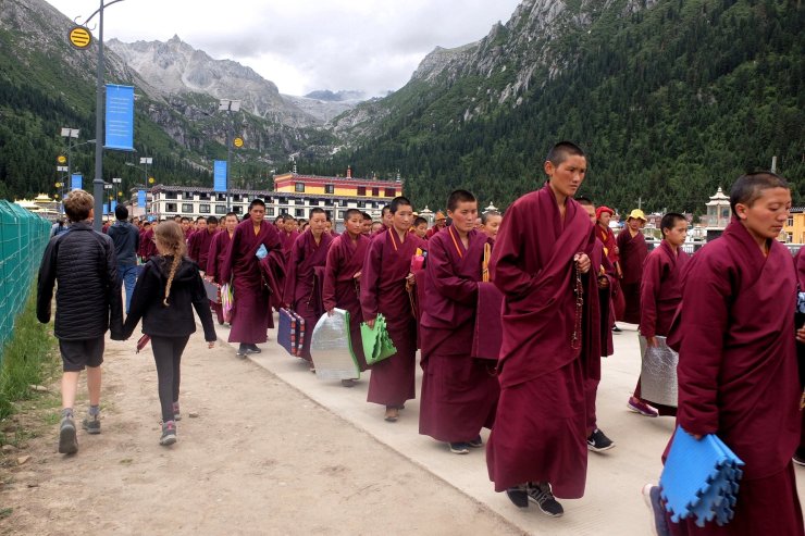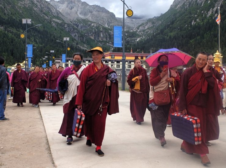 Nous continuons notre route Ă travers montagnes et vallĂ©es du Kham pour dĂ©couvrir les monastĂšres les plus importants de la rĂ©gion. Beaucoup sont rĂ©cemment reconstruits, sur des sites historiques, en grande partie grĂące aux dons de pratiquants bouddhistes chinois souhaitant accĂ©der Ă l’enseignement de MaĂźtres reconnus.