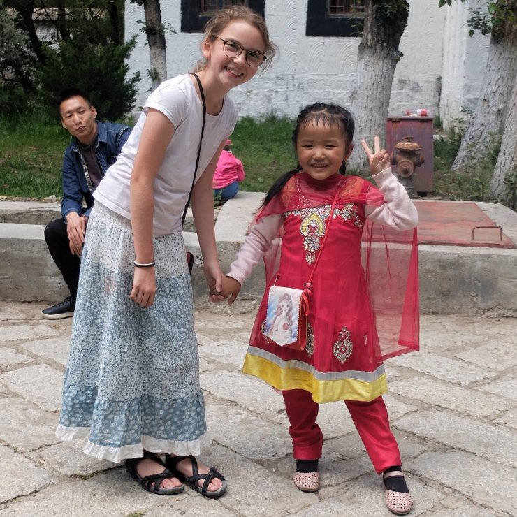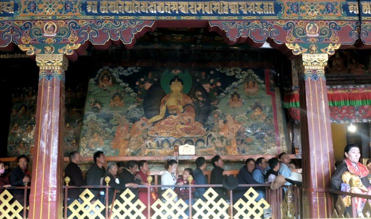 Dann Spaziergang in den GĂ€rten von den SommerpalĂ€sten, wo die Bewohner fĂŒrs Joghurt Festival (in Echt!) massenhaft gekommen sind. Dazu dĂŒrfen wir kurz eine tibetische Oper zuschauen.