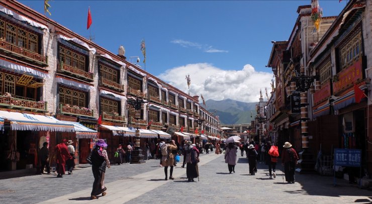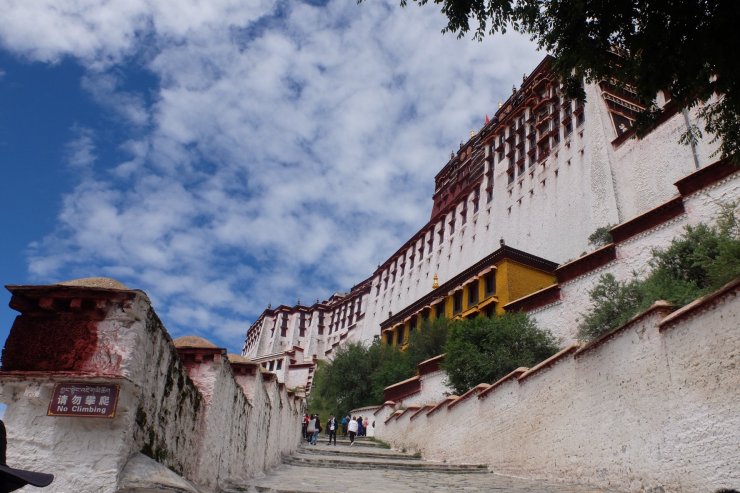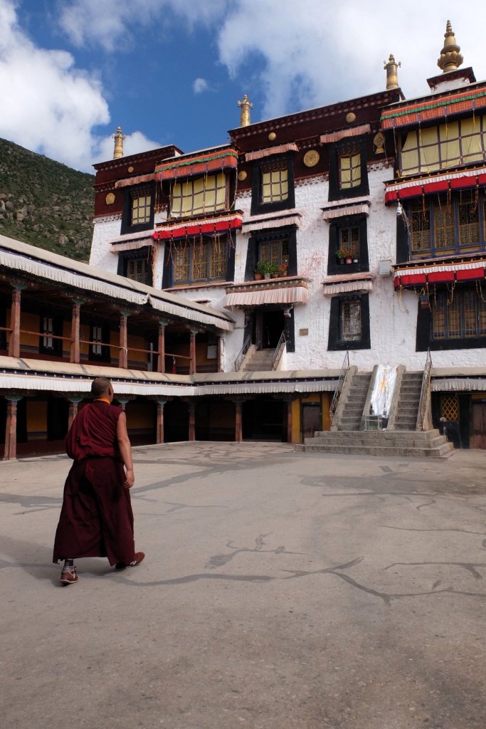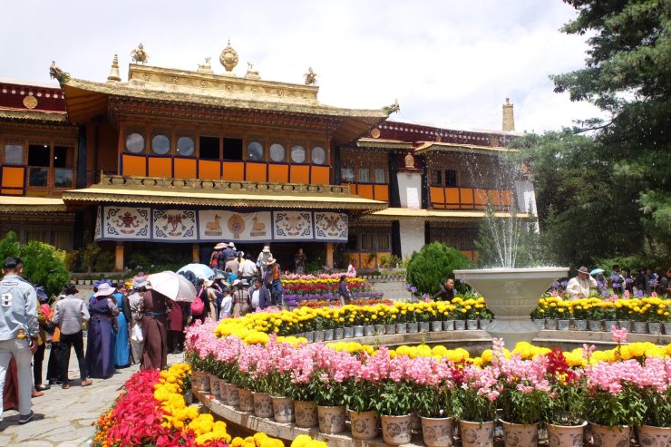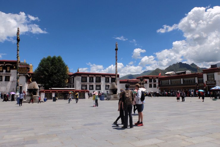 đ©đȘ Was soll ich zu Lhasa, wovon wir seit Jahren trĂ€umen, sagen? Tempel und PalĂ€ste, eine reiche Geschichte, eng mit tibetischen Königen und mit den 14 DalaĂŻ Lamas gebunden (inklusive der aktuelle DalaĂŻ Lama, der sich als Soldat verkleiden musste, um in 1959 die Stadt verlassen zu können), ein wechselndes Wetter wie in der Bretagne (sogar extremer), ModernitĂ€t und StraĂen, die lebendig und verstopft sind (was wĂŒrde Alexandra David-Neel darĂŒber denken??*). Wir treffen sogar Touristen, was so selten in den letzten 10 Tagen im Kham passiert ist. NatĂŒrlich das Dasein von vielen Polizisten und Soldaten, die die mögliche « Bestrebungen » bremsen sollten (unsere Eintrittserlaubnis mĂŒssen wir regelmĂ€Ăig zeigen, sogar um den Basar zu besuchen und unsere Passnummern stehen auf unseren Eintrittskarten fĂŒr den Potala Palast! Und… oje… in den Autos von Touristen gibt es Kameras…).