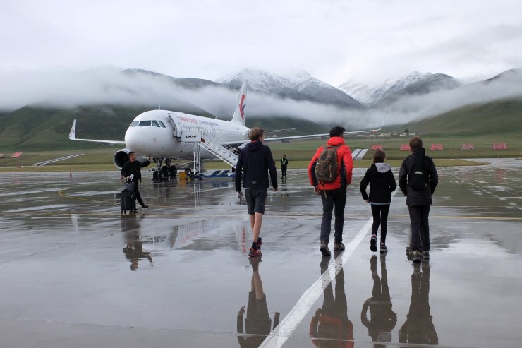 đ©đȘ Puhhhh!!…. Erlaubnis fĂŒr den Eintritt in die Tibet Autonomous Region (TAR) in Ordnung, und nach einem Schritt beim Polizeiamt vom Flughafen dĂŒrfen wir nach Lhasa fliegen (die StraĂe ist fĂŒr AuslĂ€nder gesperrt). Wir verlassen Yushu, wo es in der Nacht auf den Bergspitzen geschneit hat – ehrlich gesagt erleichtert, da dieser Schritt in der Reise « heikel » war….- und genieĂen den schönen Blick durch die Fenster, mit ein paar Spitzen ĂŒber 7000m, die oberhalb der Wolken auftauchen.