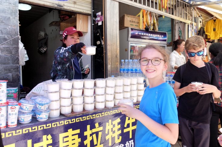 Et pour se remettre de la chaleur, un bon yaourt tibĂ©tain! / Um sich abzukĂŒhlen ein leckerer tibetischer Yoghurt!