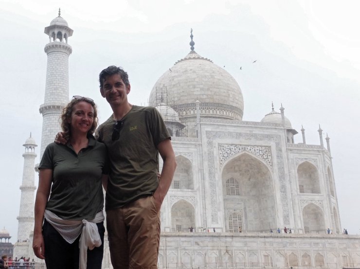 đ«đ· L’aprĂšs-midi nous improvisons (car le train est -oh surprise!- en retard et nous avons donc du temps) une sortie dans le jardin Nehtab Bagh oĂč nous admirons une vue splendide du Taj Mahal de l’autre rive de la riviĂšre, mais cette fois il n’y a pas beaucoup de touristes. AprĂšs, il est l’heure de rentrer et de quitter le Taj Mahal que nous n’oublierons jamais.
