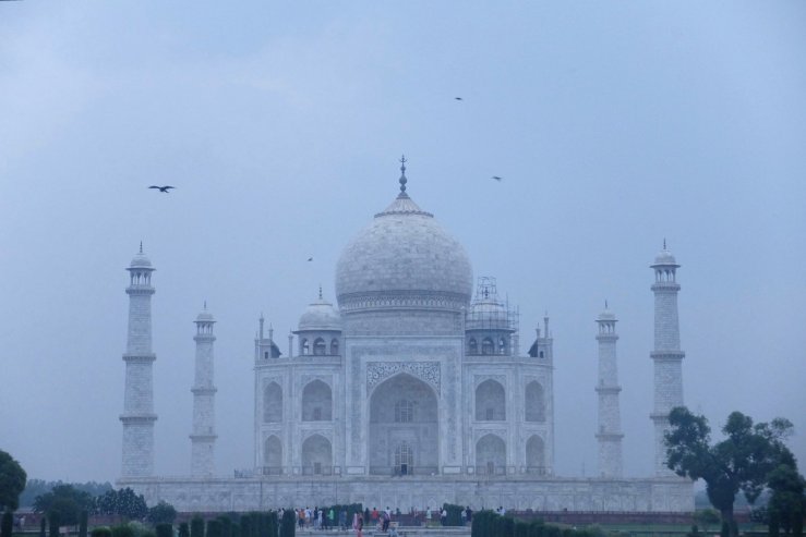 đ©đȘ Am nĂ€chsten Tag sind wir um 5 Uhr morgens aufgestanden um mit den eigenen Augen den unglaublichen Taj Mahal und seine groĂe Kuppel, seine Minaretten, aber auch seine perfekte Symmetrie und seine sehr weiĂe Farbe zu sehen. Diese SehenswĂŒrdigkeit wurde im 16 Jh. von 20 000 Handwerkern gebaut und von einem persischen Architekt gefĂŒhrt. Ein mogholische Prinz hatte diesen Bau beauftragt, weil seine Frau bei der Geburt ihres vierzehnten Kindes gestorben war. Ihr Grab befindet sich im Inneren und das ihres Mannes auch. Die Legende erzĂ€hlt dass, als der Taj Mahal fertig war, der Prinz die HĂ€nde vom Architekten geschnitten und seine Augen gestochen hĂ€tte, damit er nie so ein schönes GebĂ€ude nachmachen kann.
