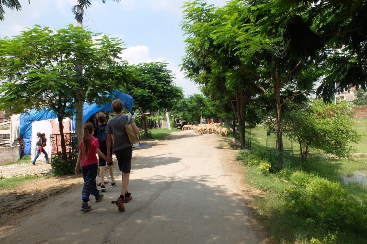 Nous logeons dans une pension avec des chambres louĂ©es pour plusieurs semaines ou mois. Par exemple, un de nos voisins vient de Calcutta et est en mission dans la rĂ©gion pour un an ; d’autres viennent pour des sĂ©jours de mĂ©ditation au sein d’un des nombreux monastĂšres de la ville. Nous avons en quelque sorte un petit appartement Ă deux pas de la rue principale. La ville elle-mĂȘme nous plaĂźt tout de suite. Loin de la frĂ©nĂ©sie des villes visitĂ©es jusque lĂ , elle compte 3000 habitants… mĂȘme si elle peut accueillir jusqu’Ă 100 000 pĂšlerins lors de la « haute saison bouddhiste » (de novembre Ă mars).